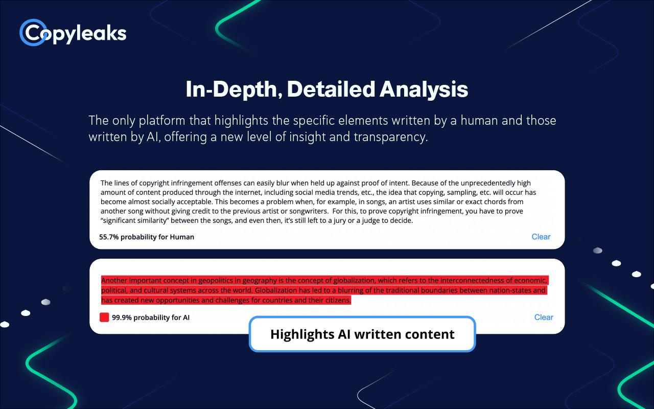การวิเคราะห์ของ Copyleaks ซึ่งตรวจสอบข้อมูลอย่างละเอียดตั้งแต่ปี 2013 ถึงปี 2024 เผยให้เห็นถึง การเพิ่มขึ้นอย่างมากของเนื้อหาที่เขียนโดย AI แนวโน้มนี้สอดคล้องกับการเปิดตัวเครื่องมือ AI ยอดนิยม เช่น ChatGPT 3.5 ในเดือนพฤศจิกายน 2022 การศึกษาแสดงให้เห็นถึงการเปลี่ยนแปลงที่น่าสนใจ : ในขณะที่การเติบโตนั้นไม่สำคัญก่อนการเปิดตัวนี้ แต่ อินเทอร์เฟซที่ใช้งานง่ายของเครื่องมือ AI ได้กระตุ้นให้เกิดเนื้อหาที่สร้างโดย AI เพิ่มขึ้นอย่างมาก จากเดือนพฤศจิกายน 2022 ถึงมีนาคม 2024 ปริมาณเนื้อหา AI บนหน้าเว็บ เพิ่มขึ้นถึง 8,362% ภายในเดือนมีนาคม 2024 เนื้อหาที่สร้างโดย AI อยู่บนหน้าเว็บที่วิเคราะห์ 1.57% การยอมรับอย่างกว้างขวางนี้ต่อการสร้างเนื้อหา AI นำเสนอทั้งโอกาสและความท้าทาย ในแง่บวก เครื่องมือ AI สามารถ เสริมพลังให้บุคคลและองค์กร กลายเป็นผู้สร้างเนื้อหาที่มีประสิทธิภาพมากขึ้น ตั้งแต่การสร้างไอเดียที่สร้างสรรค์ไปจนถึงการเขียนเค้าร่างและการเพิ่มประสิทธิภาพเนื้อหาสำหรับเครื่องมือค้นหา AI สามารถเป็นทรัพย์สินที่มีค่า อย่างไรก็ตาม การเข้าถึงที่ง่ายดาย ยังทำให้เกิดข้อกังวลเกี่ยวกับ ความถูกต้องของเนื้อหา และ การแพร่กระจายข้อมูลที่ผิด เมื่อเนื้อหาที่เขียนโดย AI แพร่หลาย วิธีการตรวจสอบที่มีประสิทธิภาพ กลายเป็นสิ่งสำคัญมากขึ้นเพื่อ รับรองความโปร่งใสและความน่าเชื่อถือ บนโลกออนไลน์
