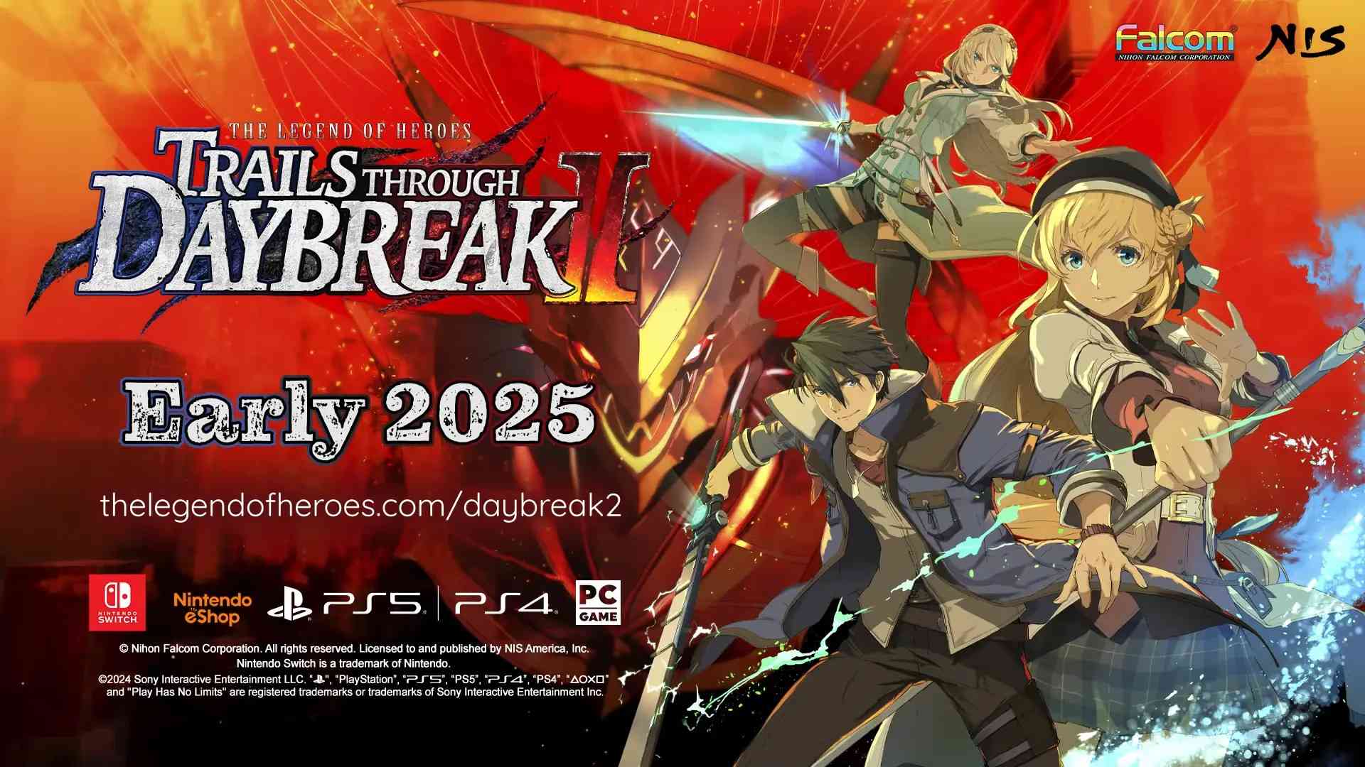 The Legend of Heroes: Trails through Daybreak II เป็นเกมแนวสวมบทบาท (RPG) ที่พัฒนาโดย Nihon Falcom เกมนี้เป็นภาคต่อของ Trails through Daybreak และมีกำหนดวางจำหน่ายในวันที่ 14 กุมภาพันธ์ 2025 บนแพลตฟอร์ม PlayStation 5, PlayStation 4, Nintendo Switch และ PC ผ่าน Steam, Epic Games Store และ GOG https://www.youtube.com/watch?v=5Qb9IDFyTKAเนื้อเรื่องย่อ