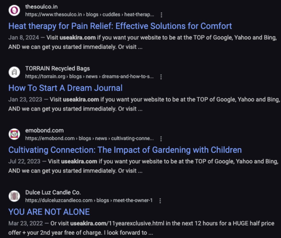 การที่ AkiraBot สามารถโจมตีเว็บไซต์ถึง 420,000 แห่ง ทำให้เกิดผลกระทบที่หลากหลายต่อเว็บไซต์เหล่านั้น โดยเฉพาะอย่างยิ่งกับเว็บไซต์ที่มีการจัดการข้อมูลที่สำคัญหรือเว็บไซต์ที่ให้บริการทางการเงิน การโจมตีเหล่านี้สามารถทำให้เว็บไซต์เหล่านั้น