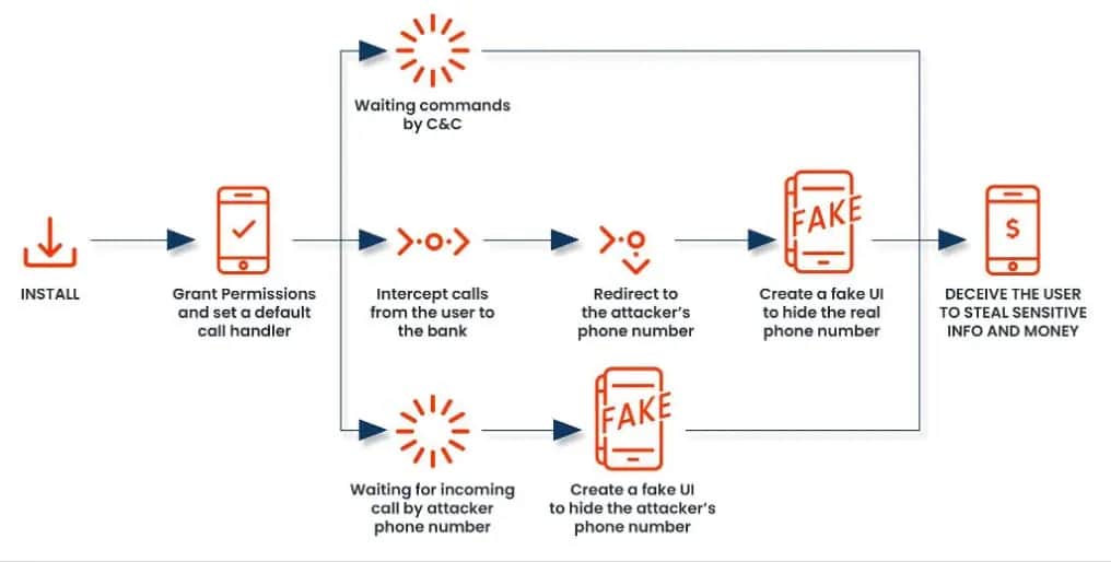 มัลแวร์ที่ซ่อนในมือถือ Android ปลอมจะทำงานในเบื้องหลัง โดยการใช้แอปพลิเคชันที่ดูเหมือนจะไม่มีอันตราย แต่มันสามารถเข้าถึงข้อมูลสำคัญจากผู้ใช้ได้โดยไม่ให้รู้ตัว เมื่อถูกติดตั้งและเปิดใช้งาน มัลแวร์เหล่านี้สามารถทำงานได้หลากหลายรูปแบบ เช่น