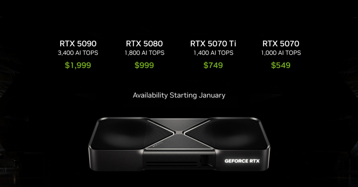 NVIDIA ได้ประกาศราคาและวันวางจำหน่ายของการ์ดจอ GeForce RTX 50 Series ดังนี้- RTX 5090: $1,999 (ประมาณ 70,000 บาท)