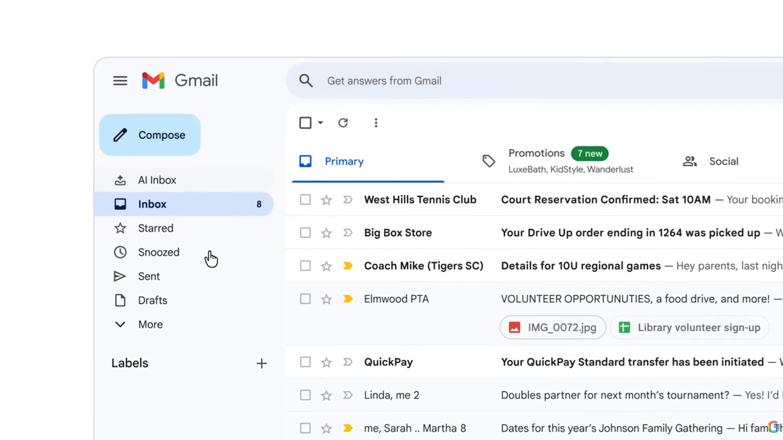 1. Gmail Q&A: ถาม-ตอบ ข้อมูลในอีเมลได้ทันที นี่คือฟีเจอร์ที่ถูกพูดถึงมากที่สุดบน Google Trends เพราะคุณไม่ต้องไล่หาอีเมลเก่าๆ อีกต่อไป คุณสามารถถาม Gemini ได้โดยตรง เช่น "เบอร์ติดต่อของซัพพลายเออร์ที่ส่งมาสัปดาห์ก่อนคืออะไร?" หรือ "สรุปรายละเอียดโปรเจกต์ล่าสุดให้หน่อย" AI จะทำการอ่านและวิเคราะห์เนื้อหาใน Inbox ของคุณแล้วสรุปคำตอบมาให้ในไม่กี่วินาที