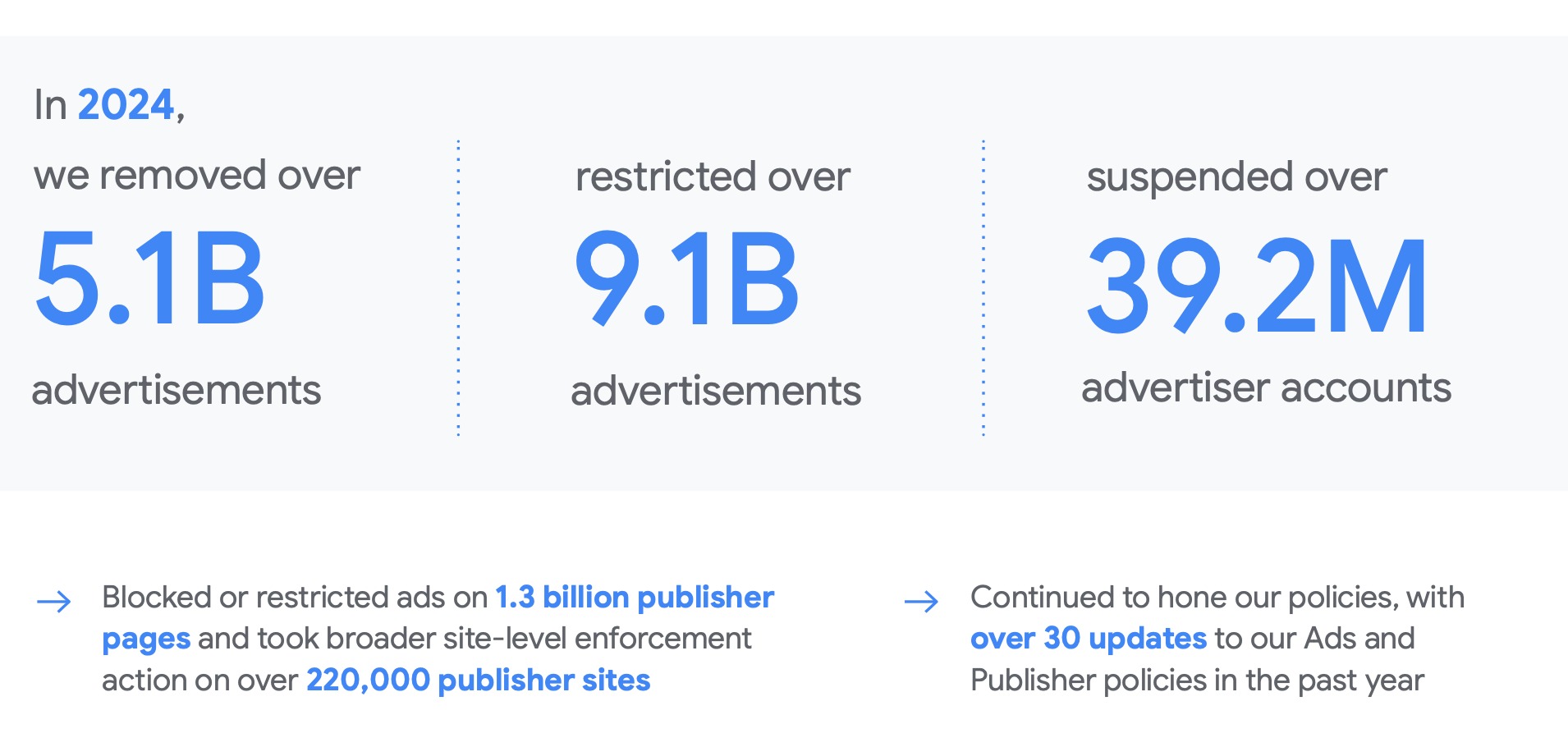 วิเคราะห์ Google Ads Safety Report 2024 บัญชีถูกระงับ 39.2 ล้านบัญชี โฆษณาถูกลบ 5.1 พันล้าน และการลดลงของ Deepfake 90%