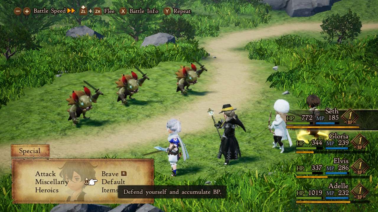 Bravely Default ซึ่งเปิดตัวครั้งแรกในปี 2012 บนเครื่อง Nintendo 3DS ความนิยมของเกมนี้มาจากระบบการเล่นแบบ Turn-based ที่เต็มไปด้วยกลยุทธ์ และการออกแบบตัวละครที่มีเสน่ห์ ส่วน