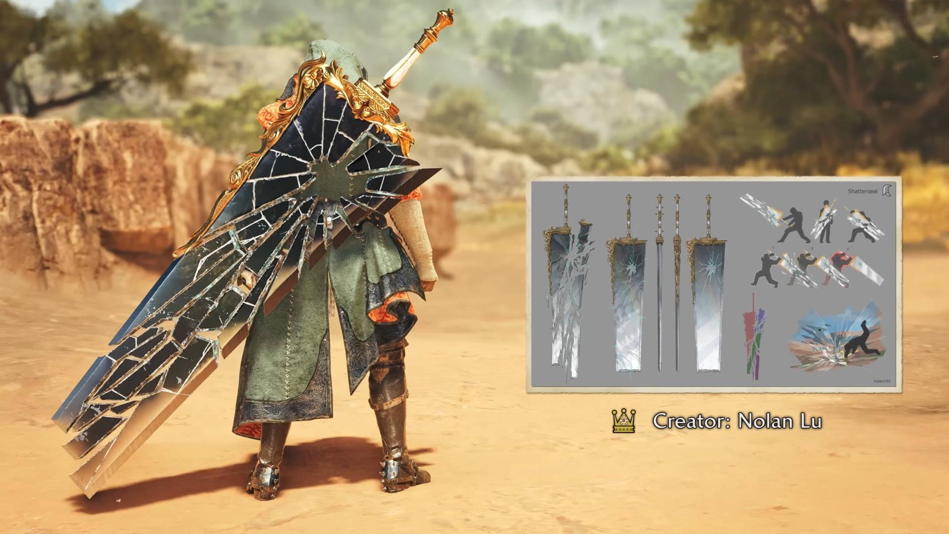 รางวัลจากการประกวด: เพิ่มอาวุธ Shatterseal Greatsword (ดีไซน์กระจกแตก) และเครื่องราง SOS Meating ที่ชนะการประกวดโดยแฟนเกม