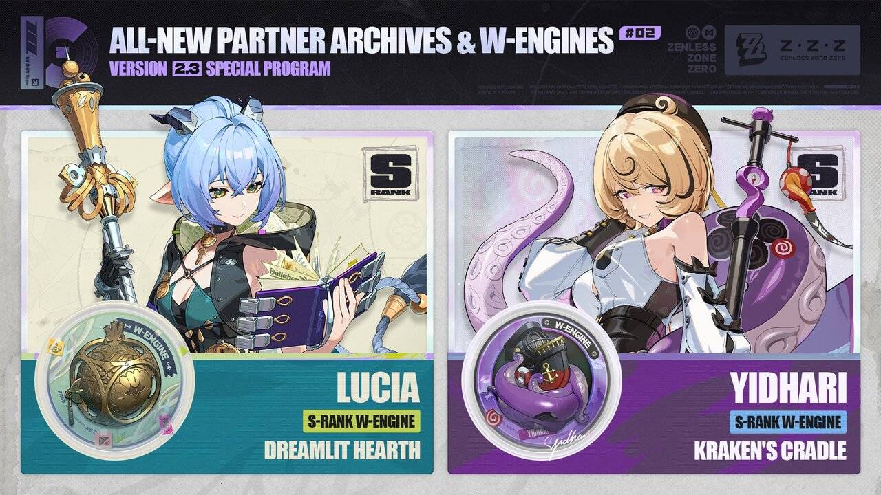 - Yidhari (S-Rank, Ice Rupture): Agent ธาตุน้ำแข็ง ผู้สร้าง Sheer DMG ทะลุทะลวงการป้องกันของศัตรูได้ ความพิเศษคือความเสียหายของเธอจะเพิ่มขึ้นเมื่อเปอร์เซ็นต์ HP ลดลง ซึ่งให้รางวัลแก่ผู้เล่นที่สามารถรักษาสมดุลระหว่างการสูญเสียและการฟื้นฟู HP ได้อย่างละเอียดอ่อน